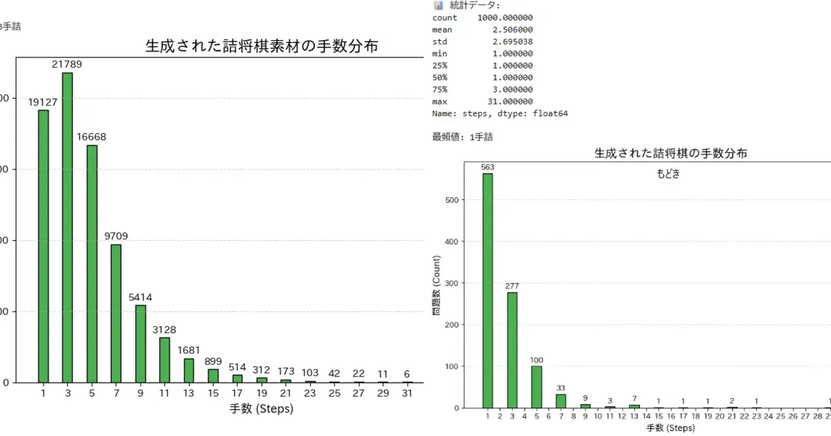 1手詰(19127)よりも3手詰(21789)の方が多くなっています。